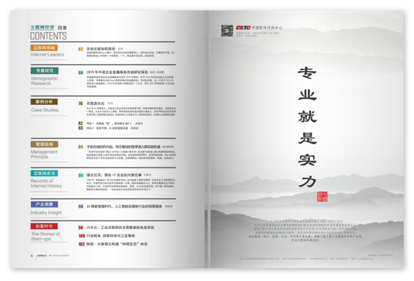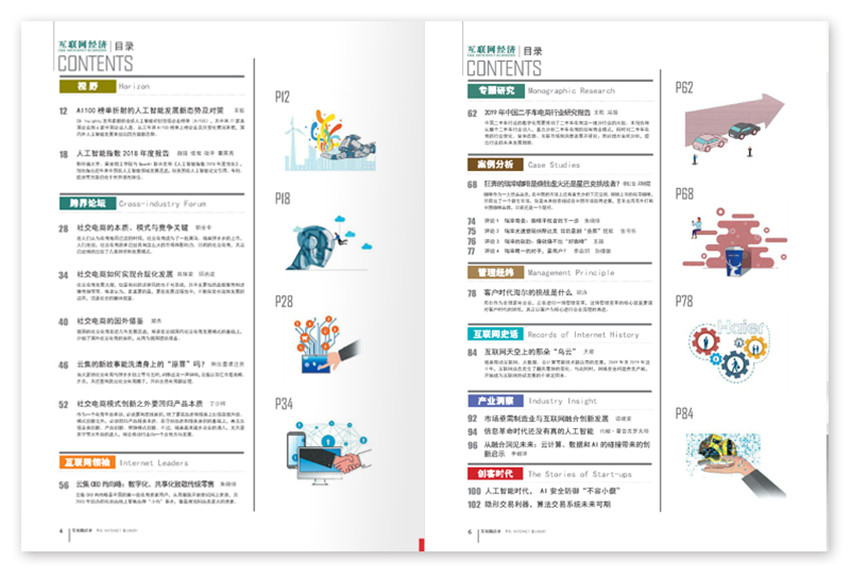 《互聯(lián)網(wǎng)經(jīng)濟(jì)》主要欄目:跨界論壇、互聯(lián)網(wǎng)領(lǐng)袖、專題研究、案例分析、管理經(jīng)緯、視野、前沿、產(chǎn)業(yè)洞察、創(chuàng)客時(shí)代等。